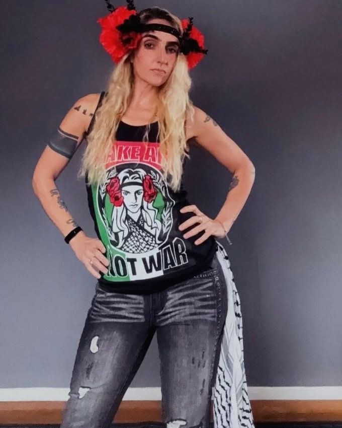 She also channels her Palestinian roots into work that highlights social justice and the struggle for liberation.